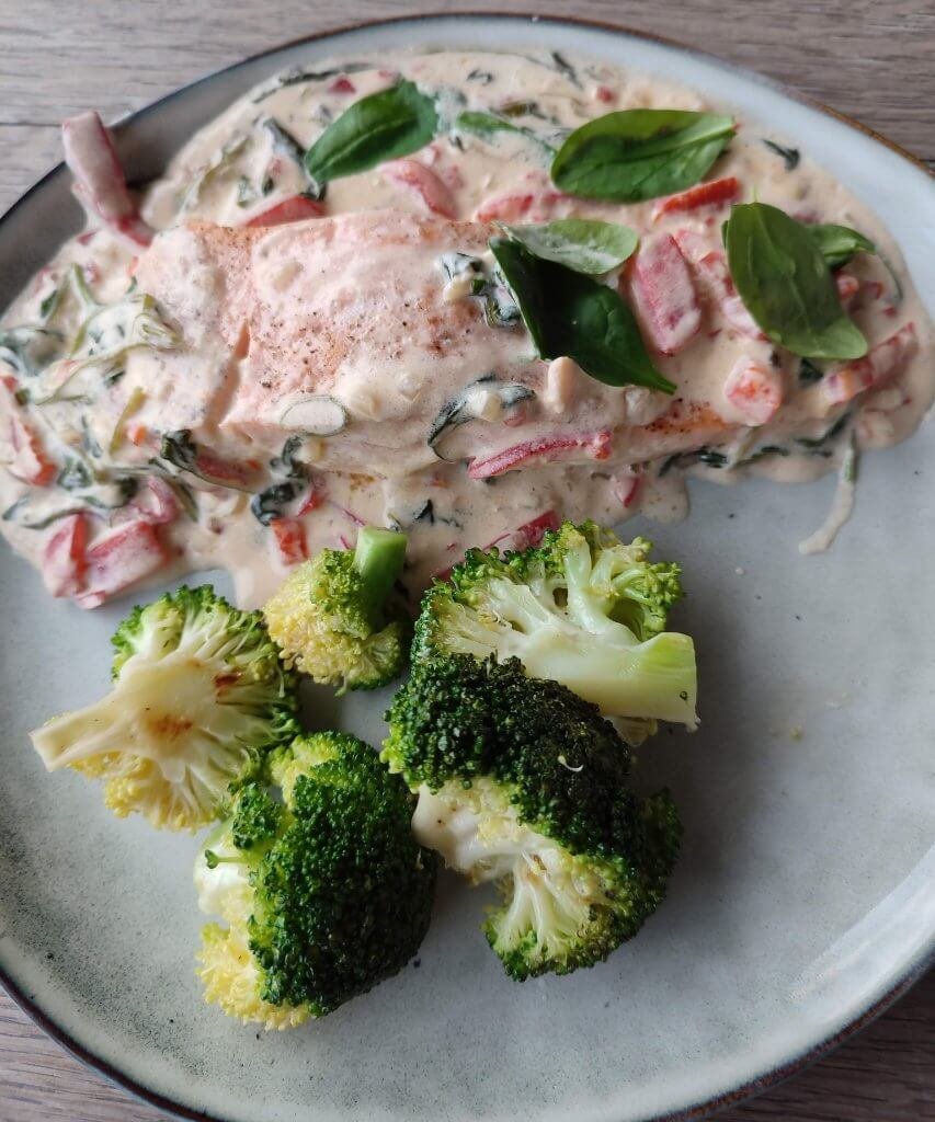 Zalm in roomsaus met broccoli