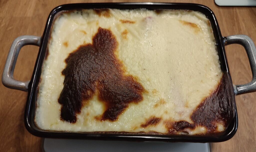 Voetselder met hesp en kaassaus