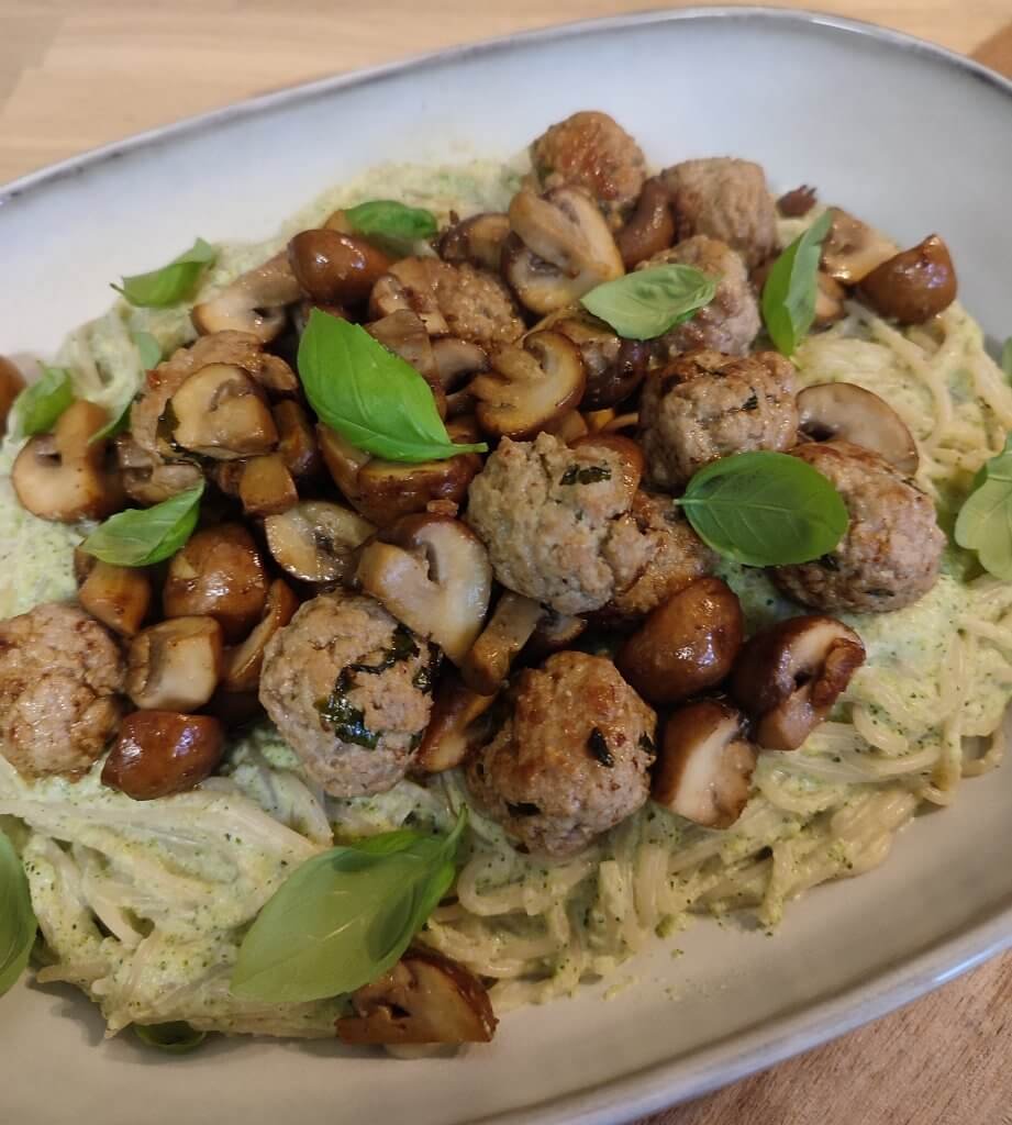 Spelt pasta met Broccolisaus en gehaktballetjes