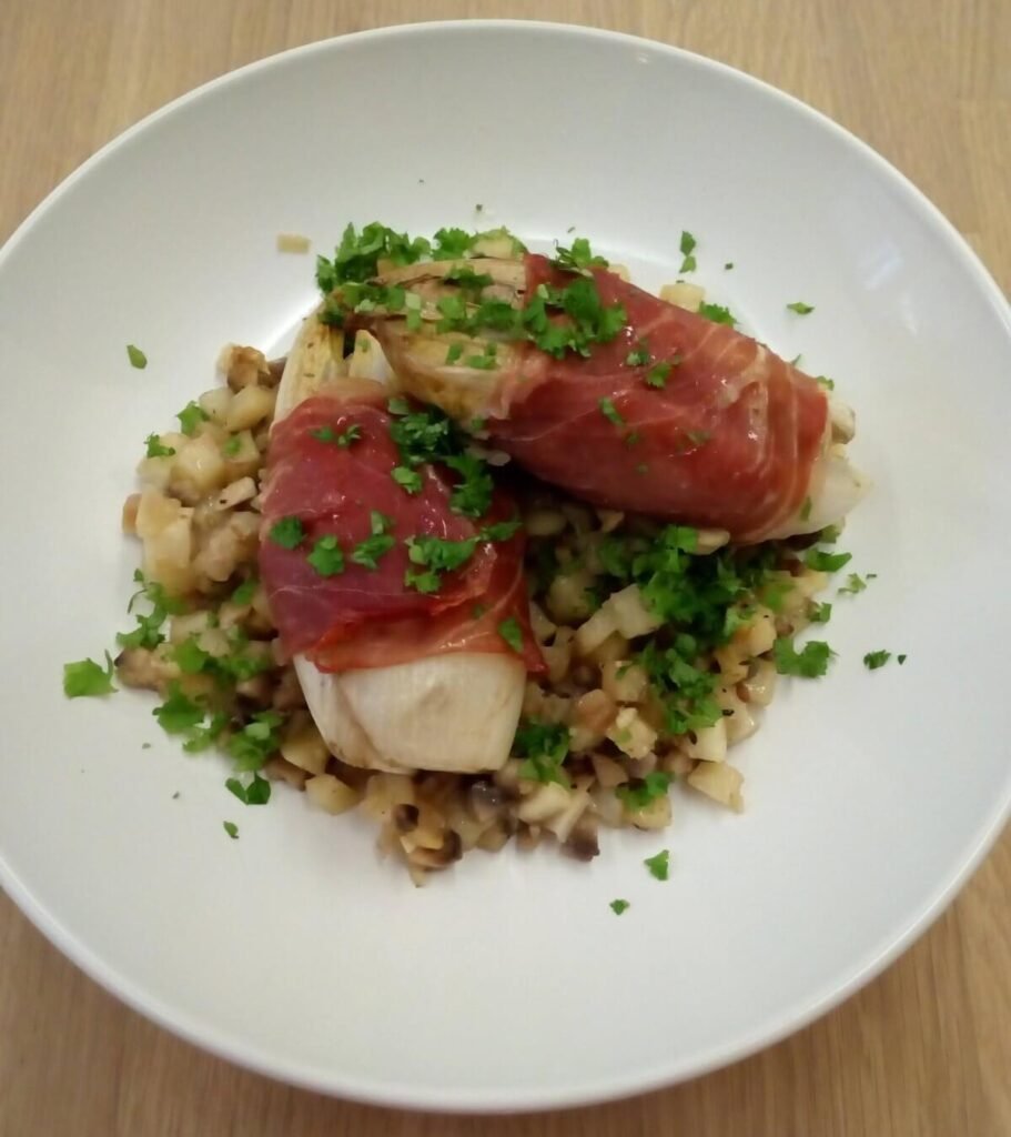 Gevuld witloof met kalfsgehakt en brunoise