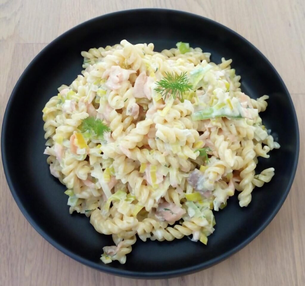 Spirelli met prei en gerookte zalm