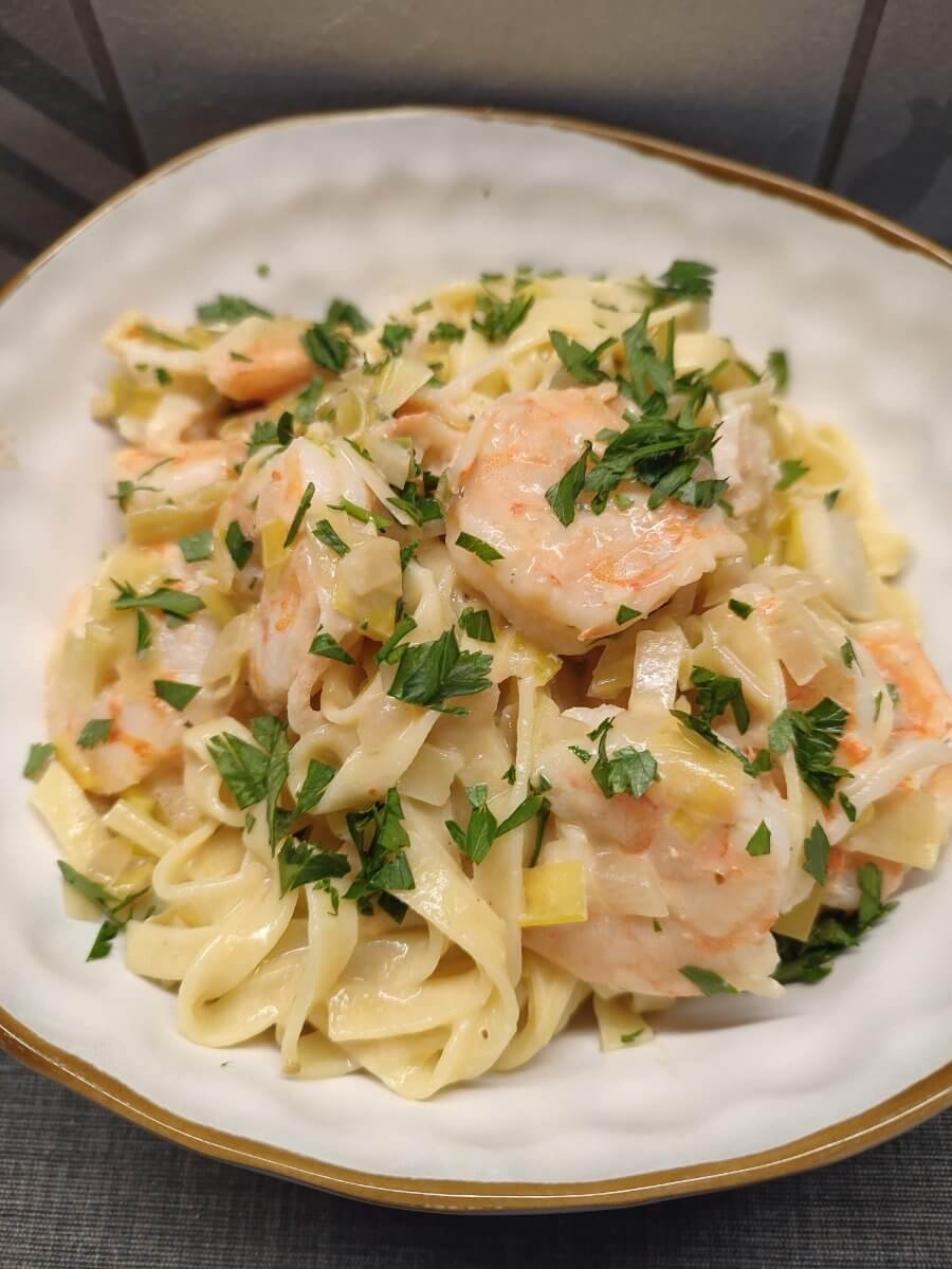 Pasta scampi in preiroomsaus