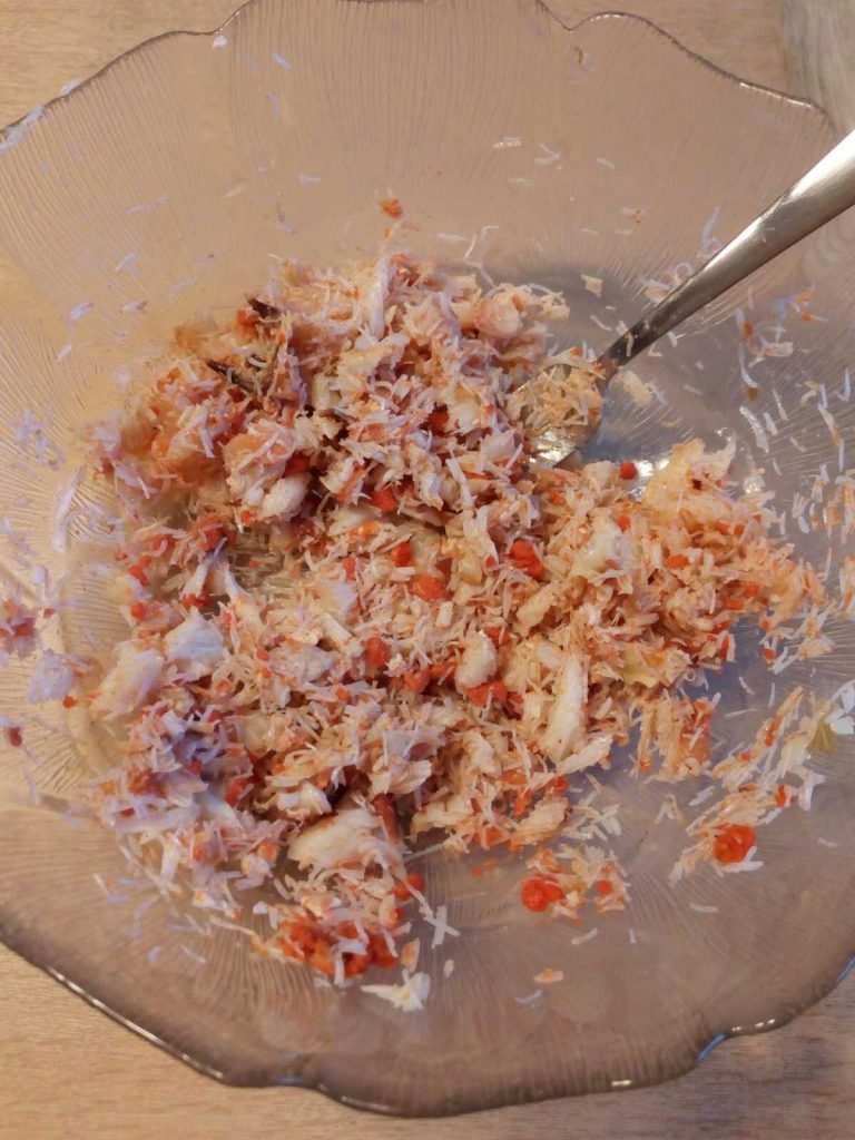 gevulde krab met verse krabsalade voorbereiding
