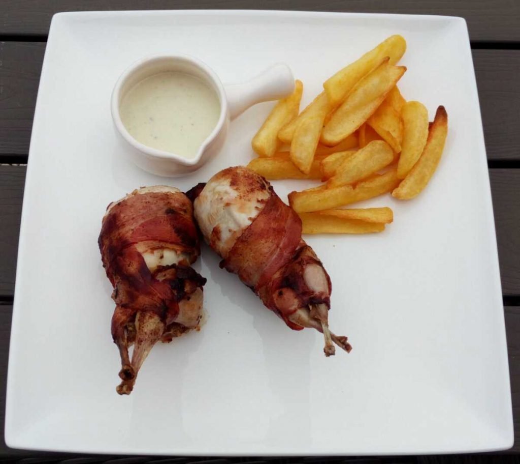 Gevulde kwartels met gorgonzolasaus en frietjes