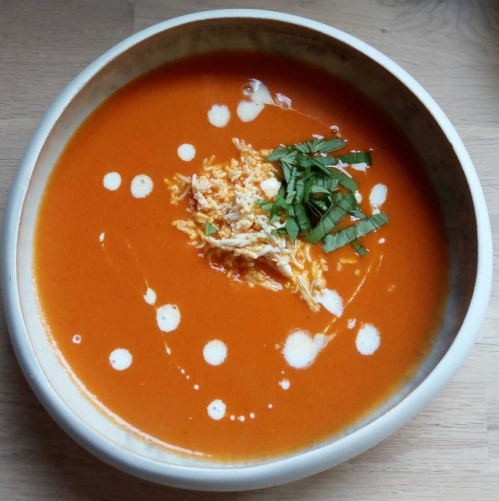 Kruidige salade met warmgerookte zalm met gorgonzoladressing