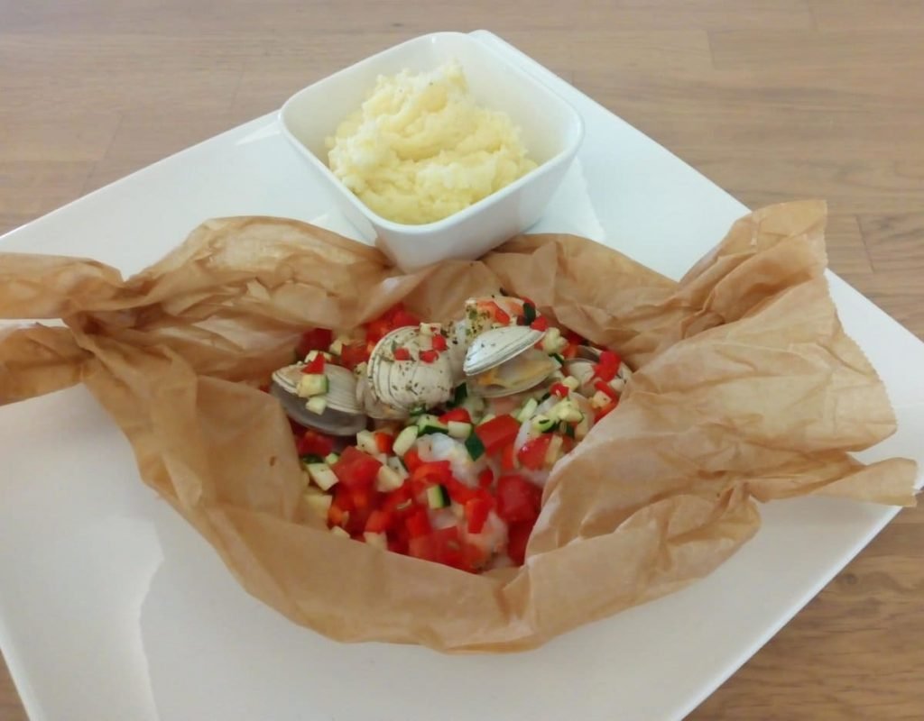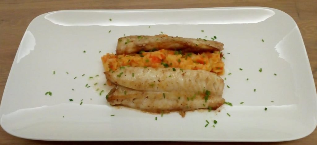 Wortelstamppot met roodbaarsfilet