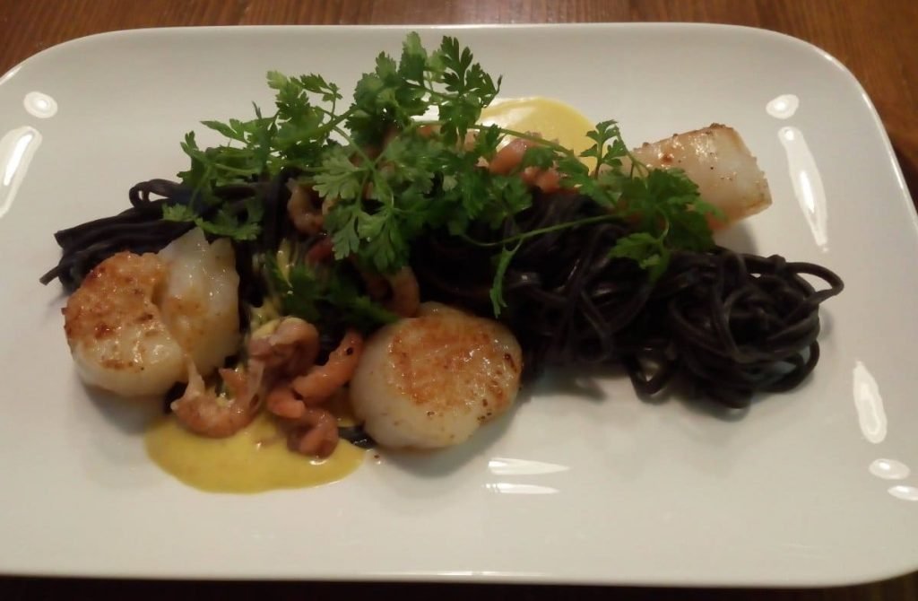Zwarte pasta met sint-jacob
