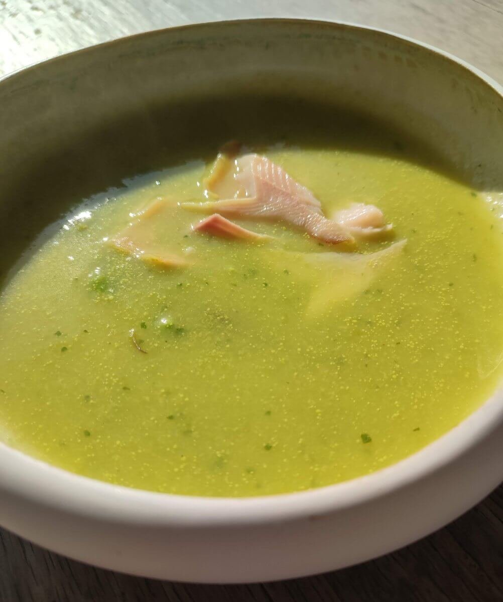 Groene aspergesoep met gerookte forel