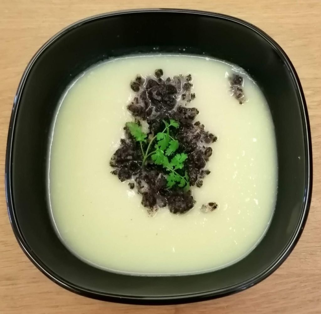 Peterseliewortelsoep met crumble van balkenbrij