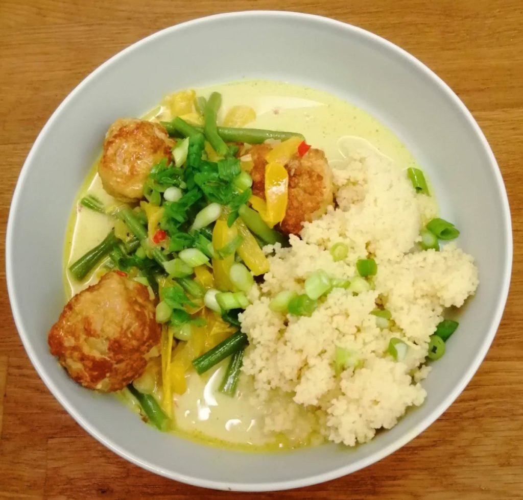 Pikante kippenballetjess met kokossaus