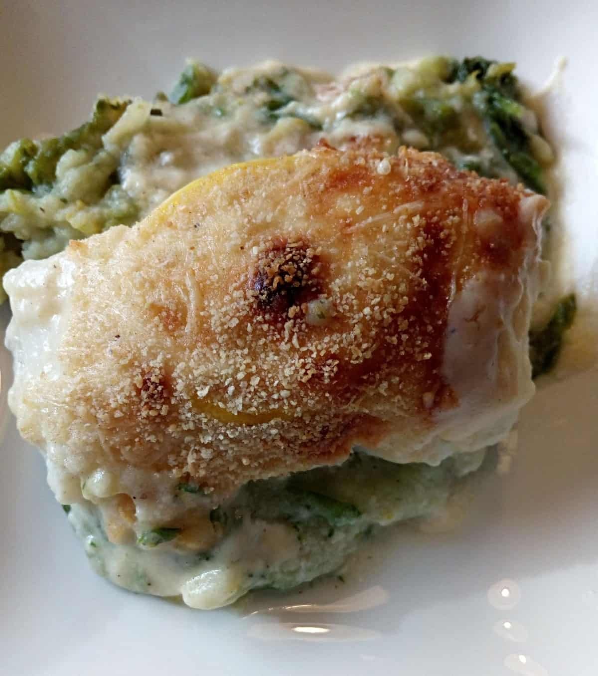 Ovenschotel met andijviepuree en kabeljauw detail