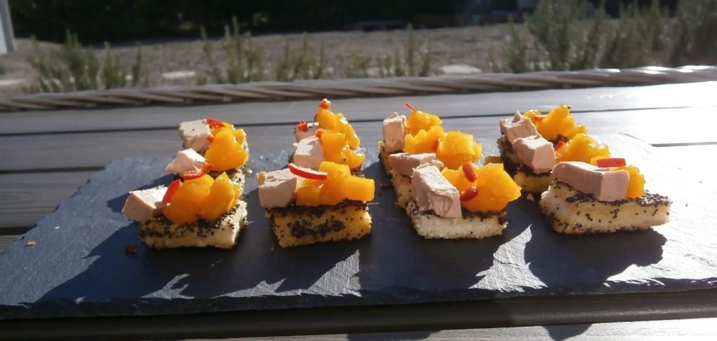 Toast foie gras mango en chili (1)