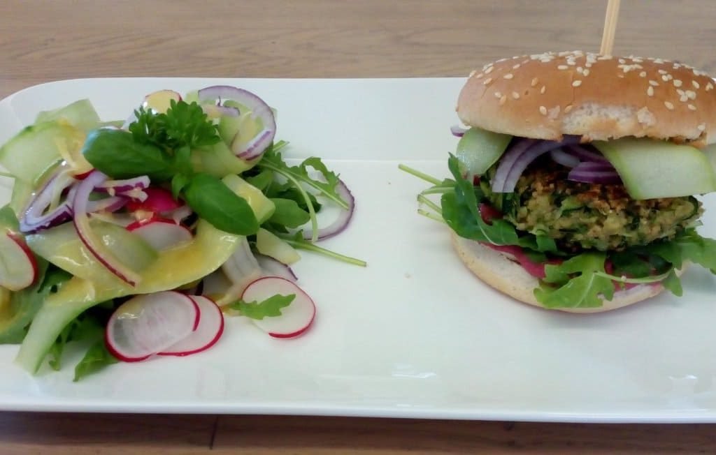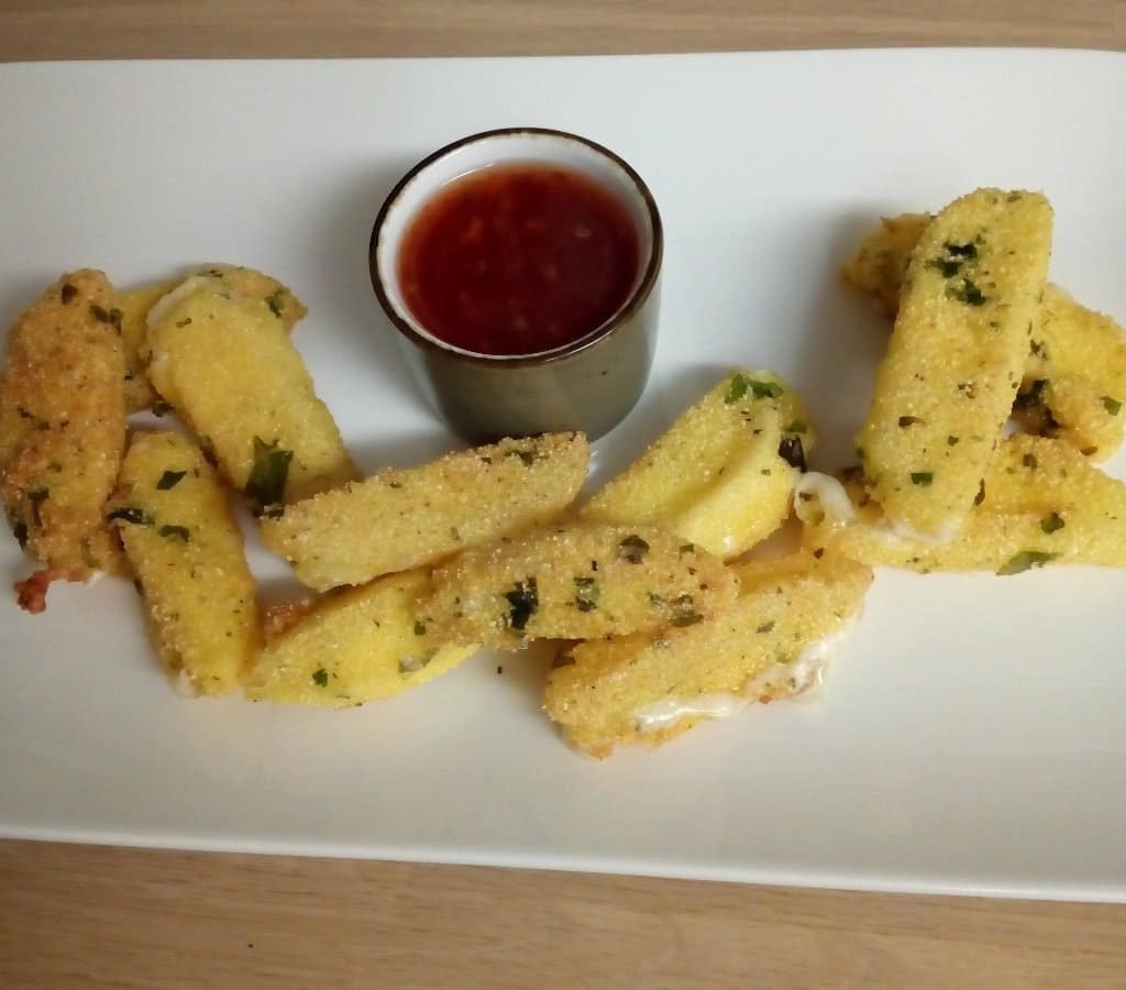 Kalkoenrolletje in een krokant jasje met pompoenfrietjes en boontjes met pancetta