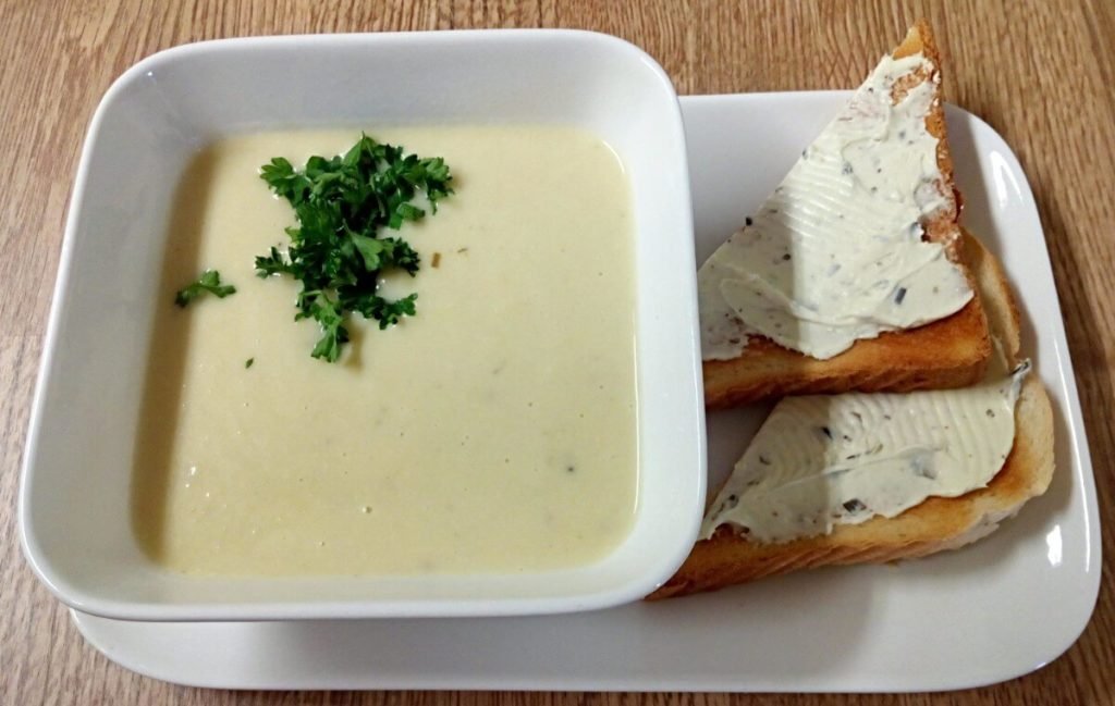 Romige prei-knolselder soep
