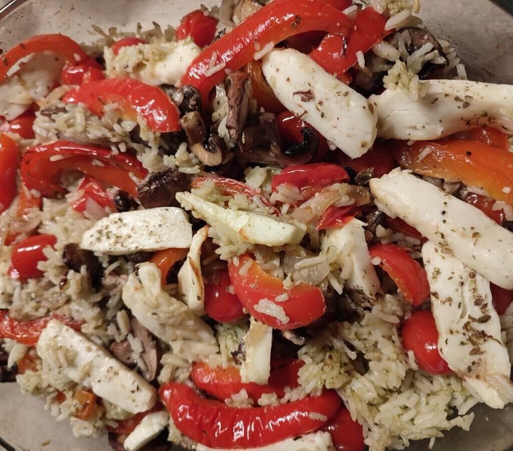 Ovenschotel met rijst en halloumi