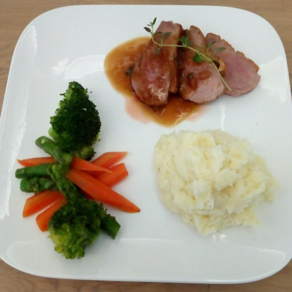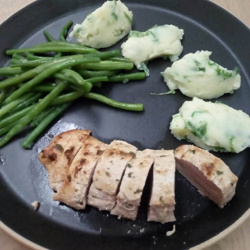 Gemarineerd varkenshaasje met snijbonenpuree en boontjes