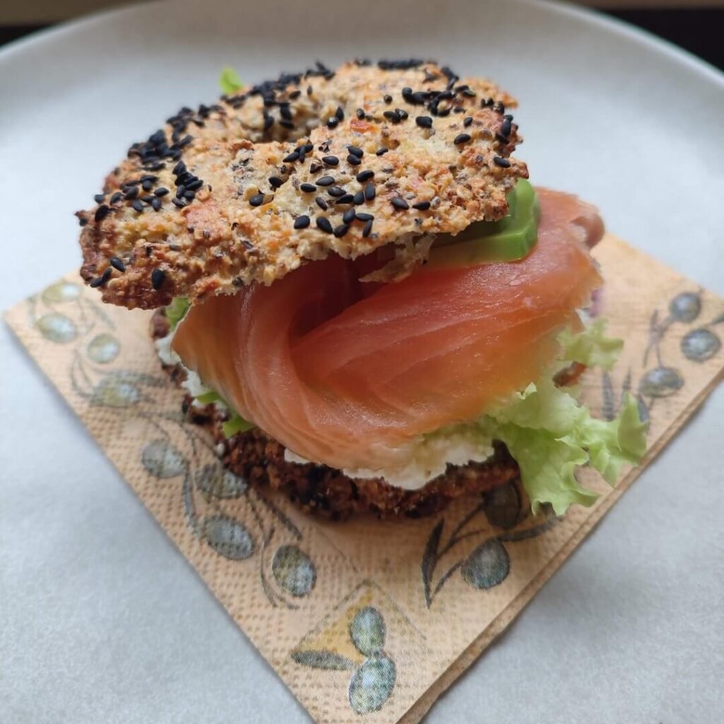 Bagel met cottagecheese en gerookte zalm