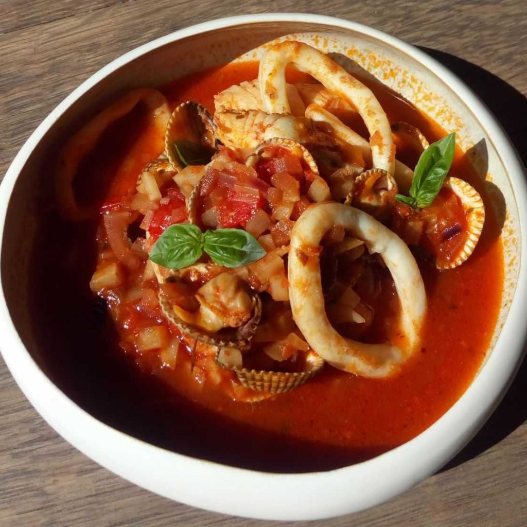 Stoofpotje van vis en zeevruchten