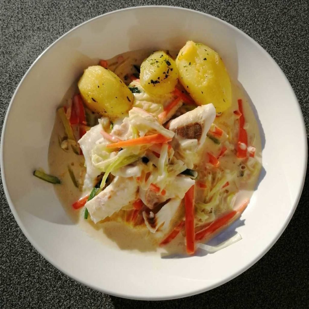 Waterzooi van vis en aardappeltjes met peterselie