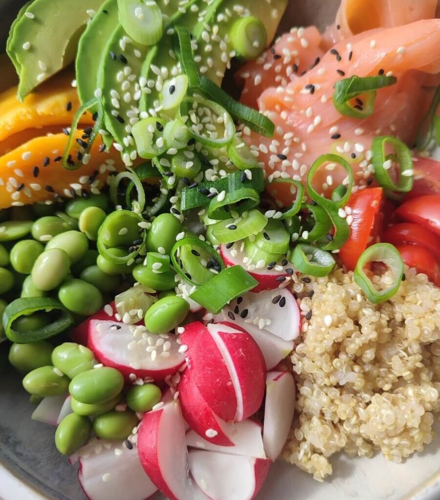 Poke bowl met pindakaas-dressing