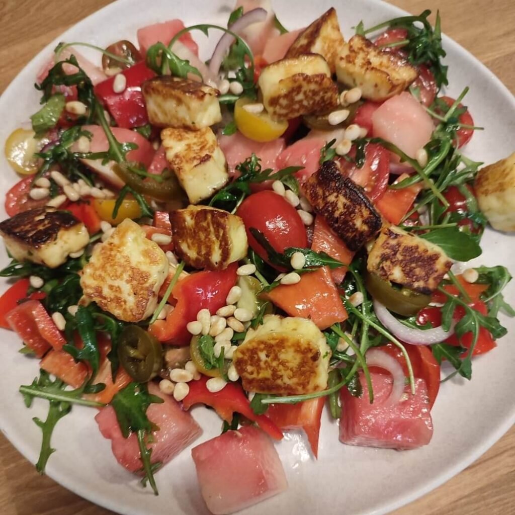 Vegetarische salade met berloumi en watermeloen
