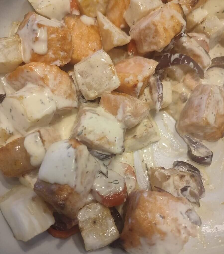 Zalm uit de oven met knolselder en mosterdsausje