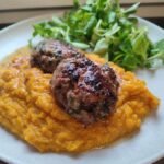 - Serveer de puree met de hamburgers en wat veldsla. Druppel wat olijfolie over de veldsla.