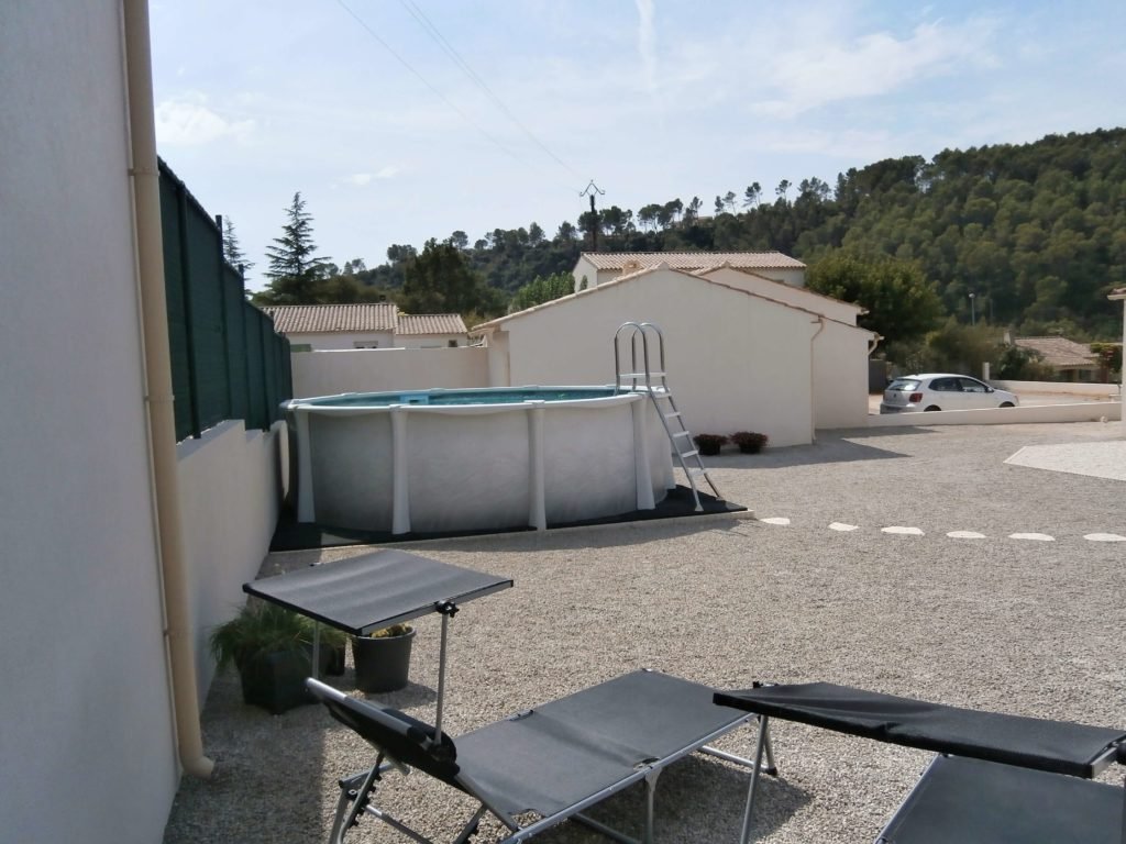 van terras naa zwembad