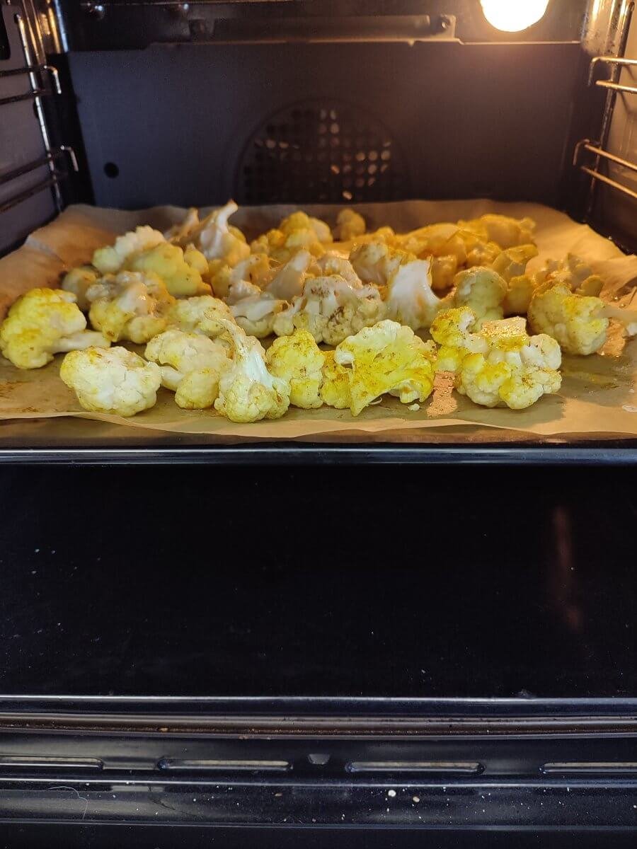 Ovenschotel met zalm en bloemkoolpuree bloemkool in de oven