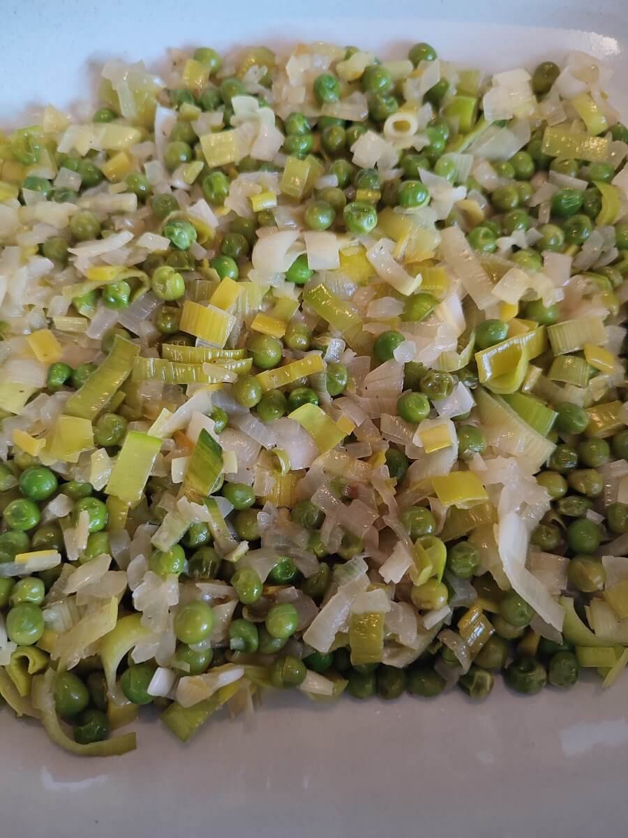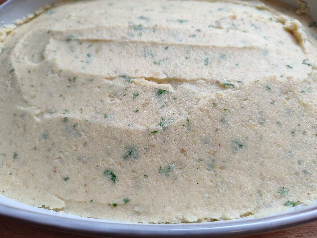 Ovenschotel met zalm en bloemkoolpuree groene groentjes