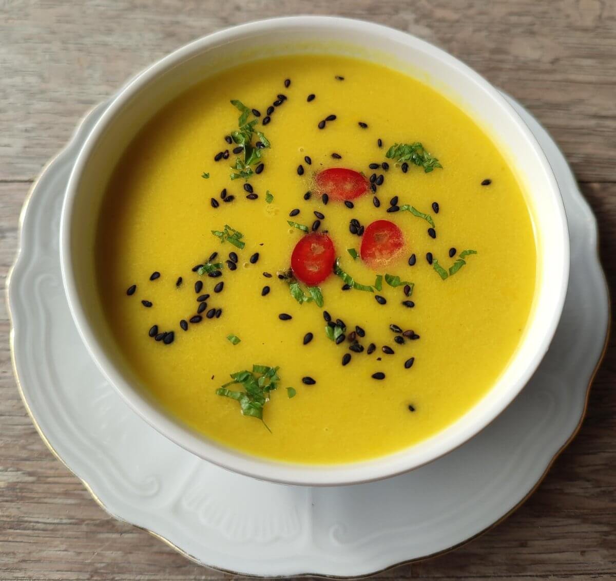 Gele paprikasoep met mascarpone