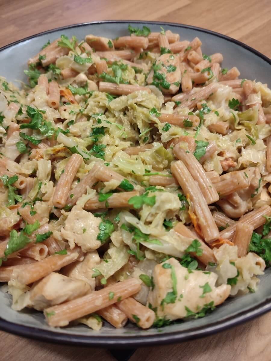Linzenpasta met savooikool en kip