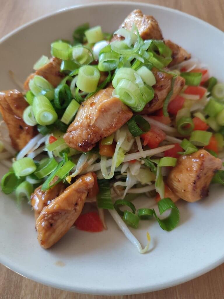 Wok groentjes met kippenblokjes en gember