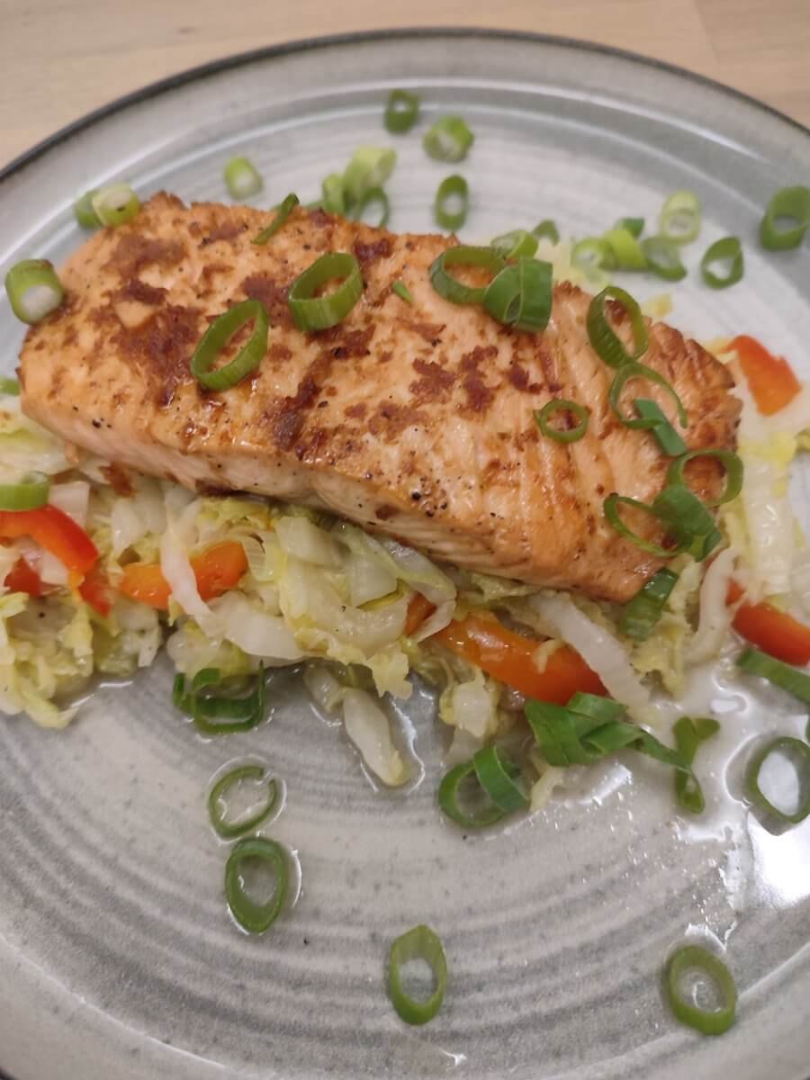 Zalm teriyaki met Chinese kool