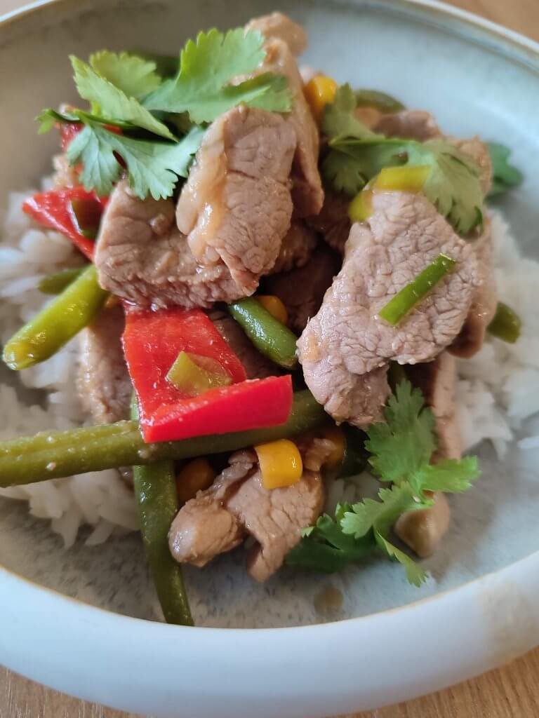 Wok van varkenshaas en boontjes