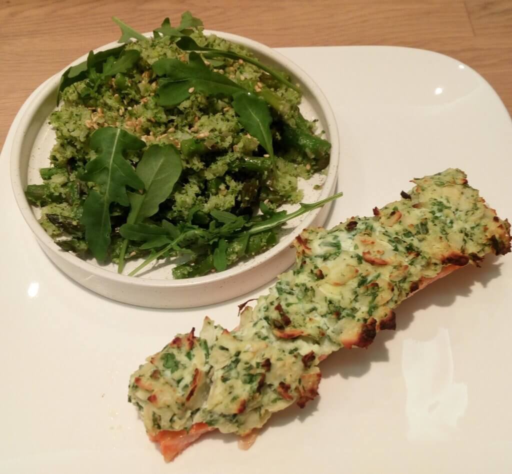 zalm met kruidenkorst en brocolli