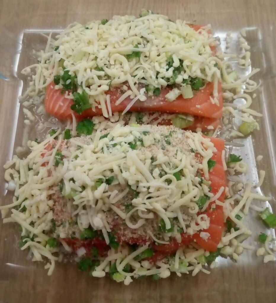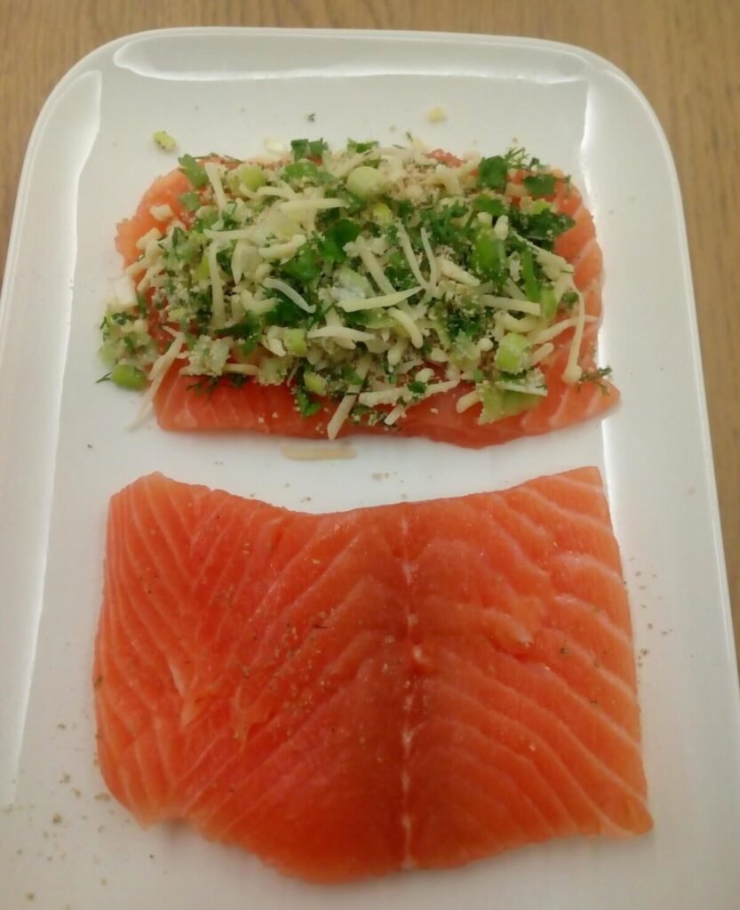 Gevulde zalm met kaas en compote van sjalot – stap 1