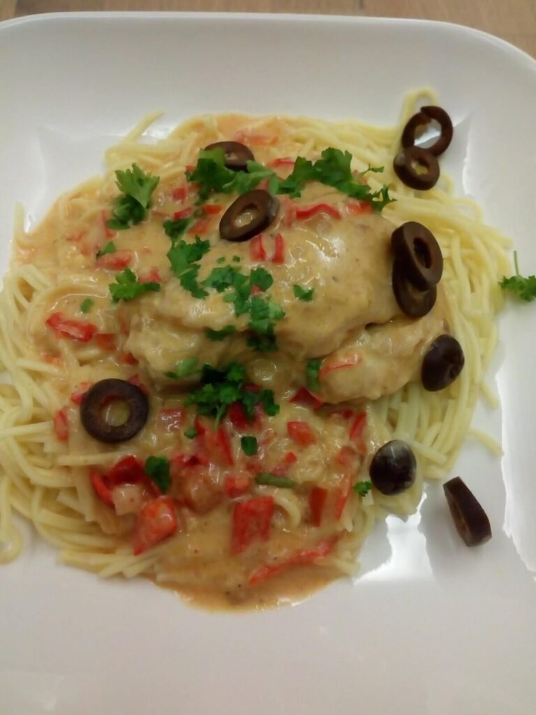 Kippendijen in paprikaroomsaus