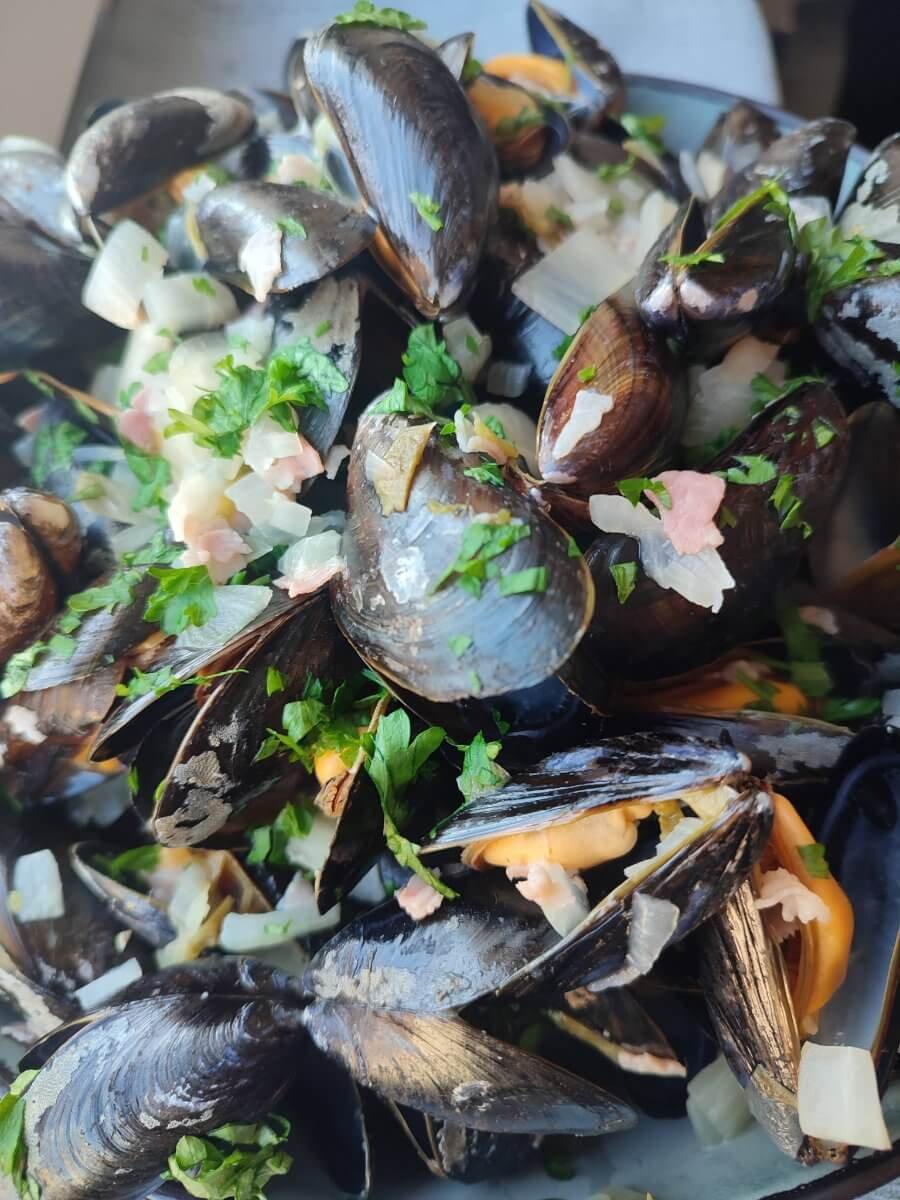 Mosselen met Hoegaarden, witloof en pancetta