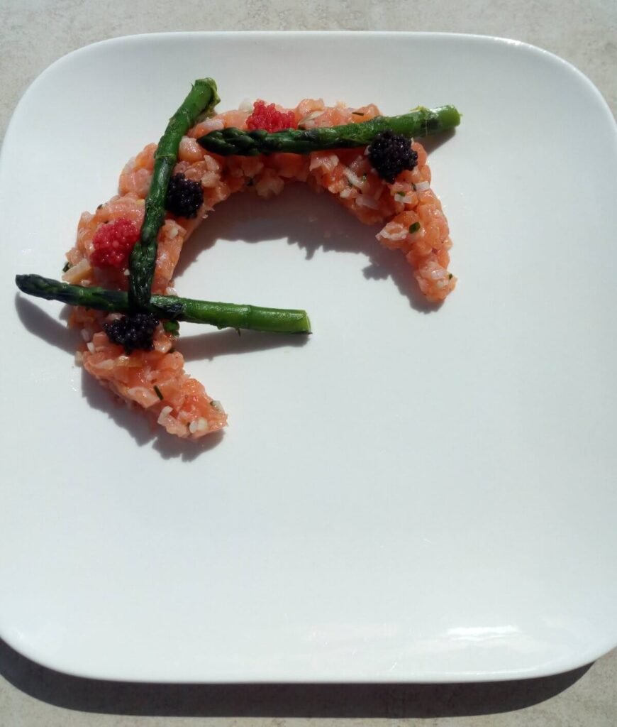 Tartaar van zalm met groene asperges