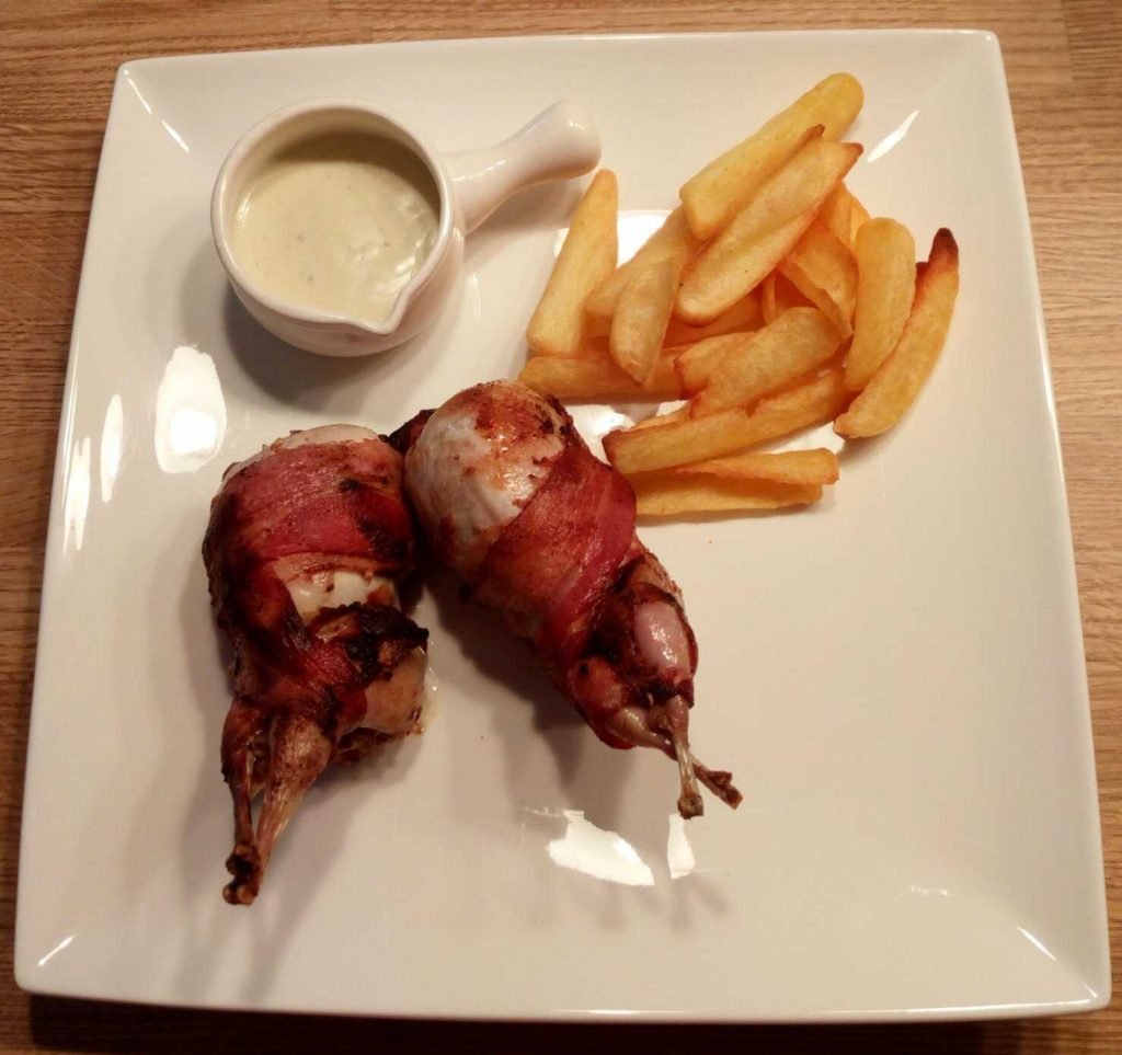 Gevulde kwartels met gorgonzolasaus en frietjes