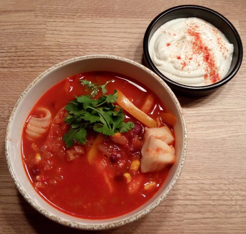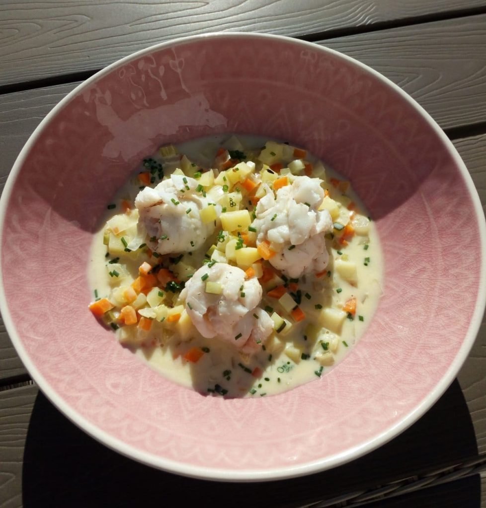 Vissoep met kabeljauw en wijting