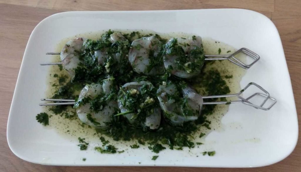 Brochettes van scampi voorbereiding