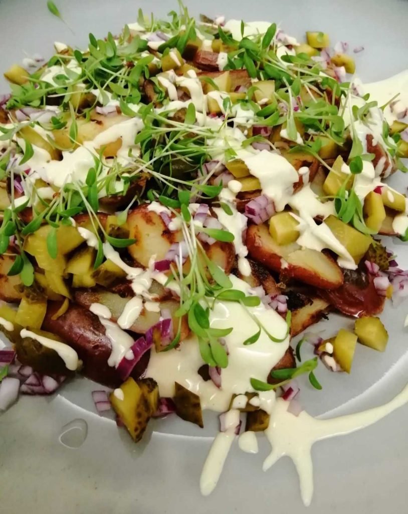 Gegrilde aardappelsalade met pittige dressing