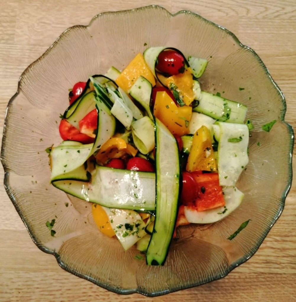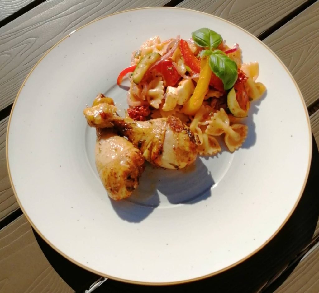 Vlindertjes met gegrilde groentjes en gemarineerde kippenboutjes