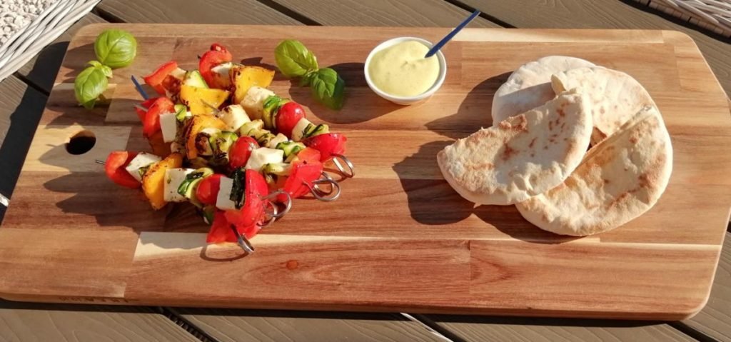 Gemarineerde groentespiesjes met halloumi