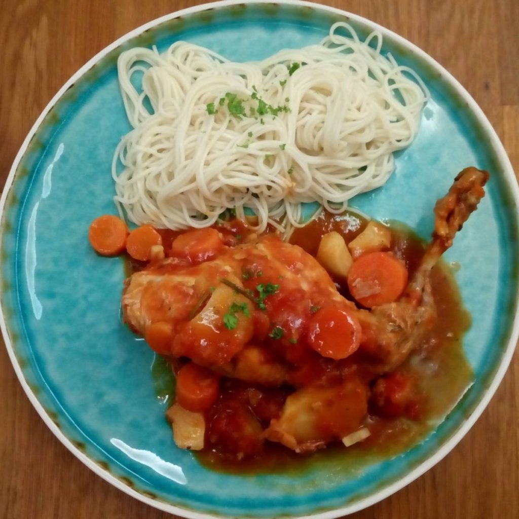 Konijn met pastinaak en noedels