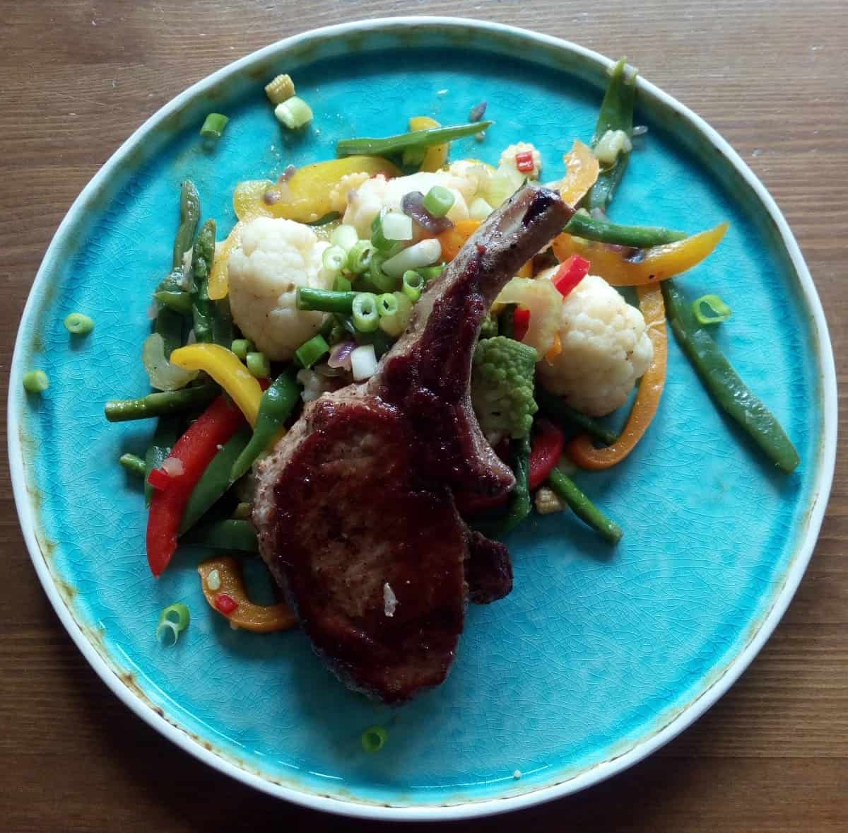 Wokgroentjes met Iberico koteletjes