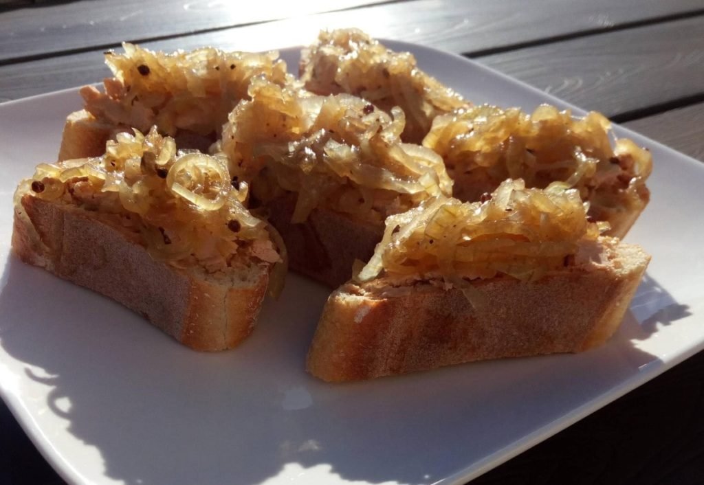 Stokbrood met foie gras en uienchutney