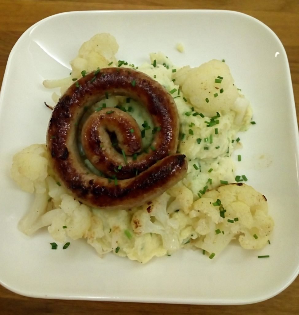 puree met bloemkool en chipolata